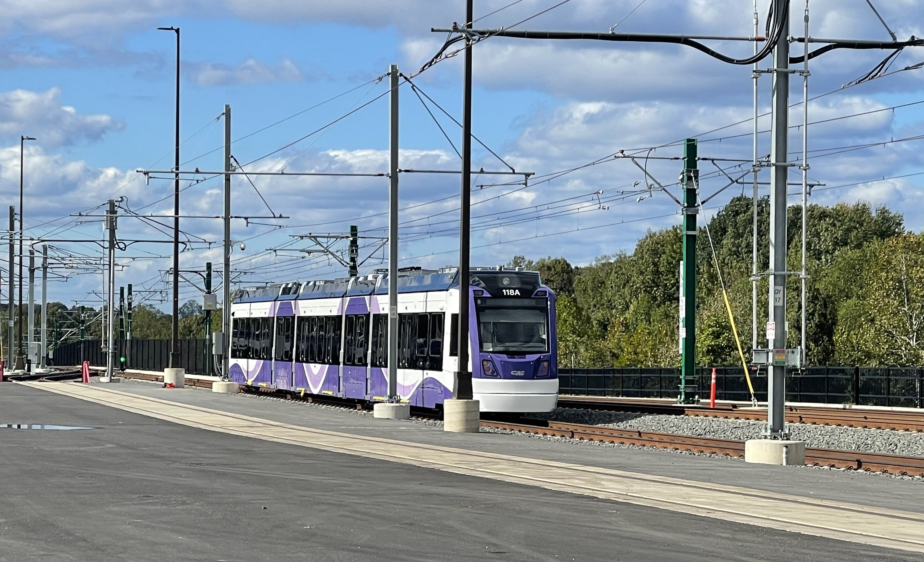 Testing of light-rail vehicles from the College Park Metro to the east is expected to begin this fall. Testing on the UMD campus is expected to begin in early January 2026.
