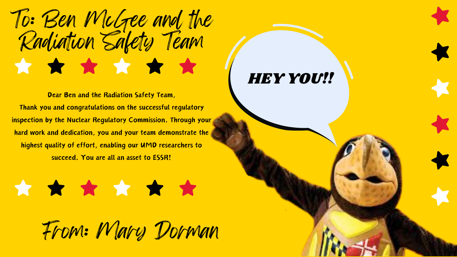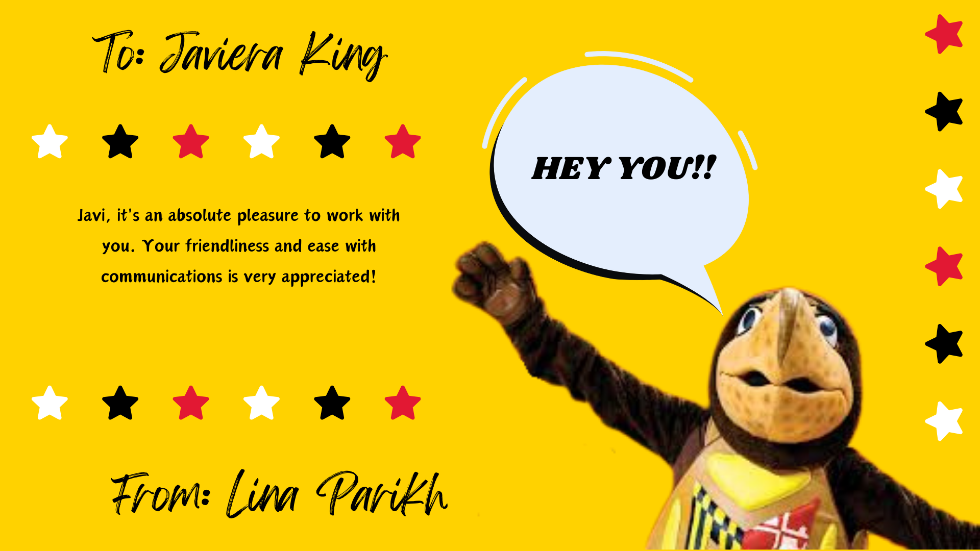 Send a "thank you" and "job well done" to a colleague in the Division of Administration using one of the predesigned templates below, which will be shared with them and posted on our page below!
